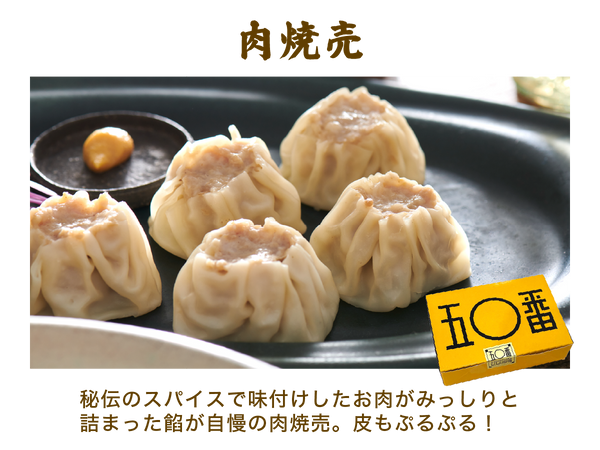 神楽坂五〇番の人気点心を詰め合わせた、贈り物にも喜ばれる特別なセットです。定番の肉まんに加え、黒豚の旨みが際立つ肉まんとちまき、ぷるっとした食感が魅力の焼売、海老がごろっと入ったピリ辛えびちりまん、香ばしい胡麻団子を詰め合わせました。 数量限定で金箔入り梅こぶ茶を添えてお届けします。 ※のし紙はカートに商品を追加する前に「のし紙(※オプション)」からお選びください。